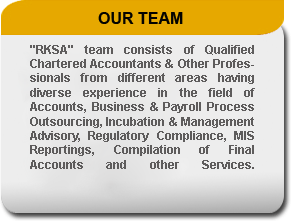 RKSA Corporate Solutions Pvt. Ltd. ( here-in-after referred as “RKSA” ) was established with the objective of providing a wide range of services like Accounts & Business Process Outsourcing, Payroll Management, Legal Process Outsourcing, Process Handling, M&A Advisory Services Regulatory Compliance & Legal HR Services and Financial Services to clients. We aspire to be